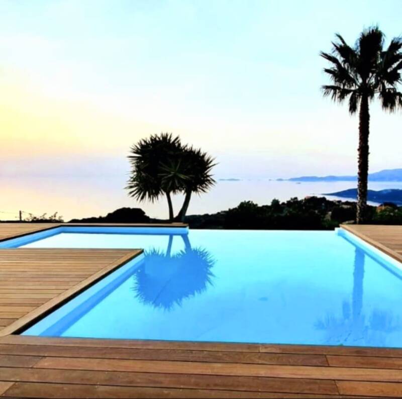 Terrasse de 80m² sur plots avec encadrements en garapa sur cargese
